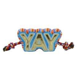 The Pawty Time Yay Tugger is perfect for dogs who love to cuddle, and also play tug. It is also great for comfort. The toy features different textures and a squeak for more added interest. Please note that this toy is not indestructible. For safety reasons dogs should be supervised when playing with toys.