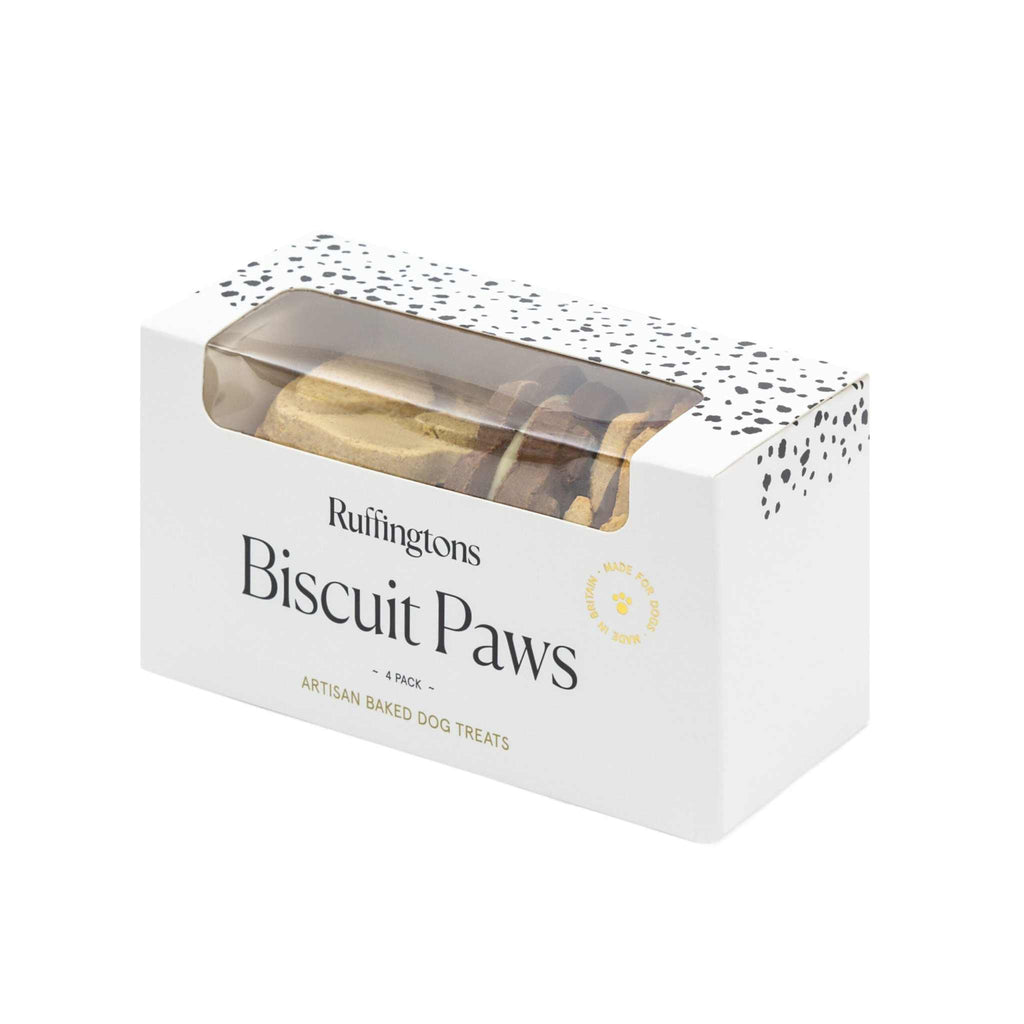 Ruffington's Biscuit Paws: 4 Pack Artisan Baked Dog Treats. A Paw-sitively Delicious Treat.