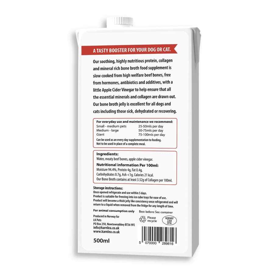 Karnlea Bone Broth for Cats and Dogs is the cupboard friendly natural bone broth