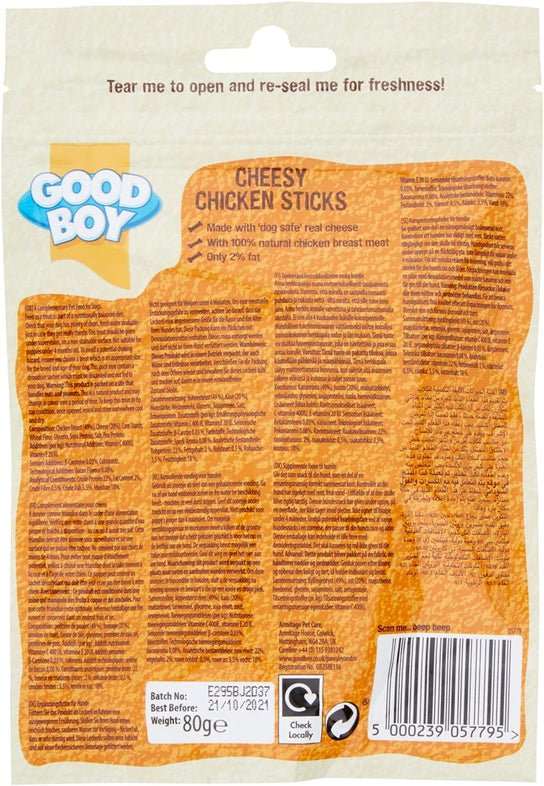 Goodboy Cheesy Chicken Sticks with natural chicken breast meat. Made with 100% natural human grade chicken breast meat and only 2% fat,