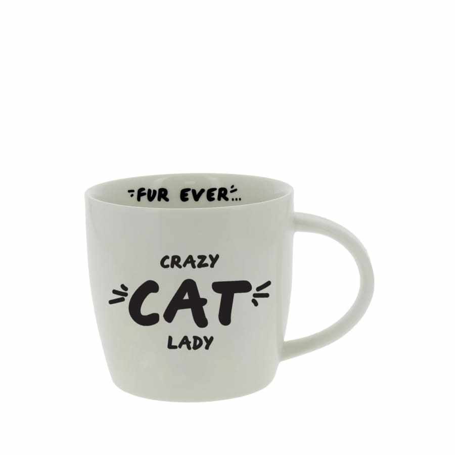 It's a stoneware mug, designed in the UK, especially for the cat lover of the house.