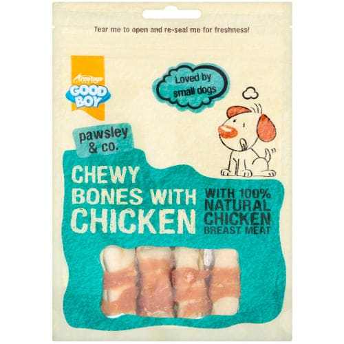 Goodboy Chewy Bones with Chicken are an excellent treat for small dogs, made of 100% natural chicken breast meat for a delicious, health-filled snack.
