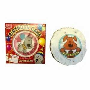This tasty, cereal-based treat is designed specifically for dogs and comes topped with edible icing and a "Happy Birthday" message, along with a cute dog and bone decoration.