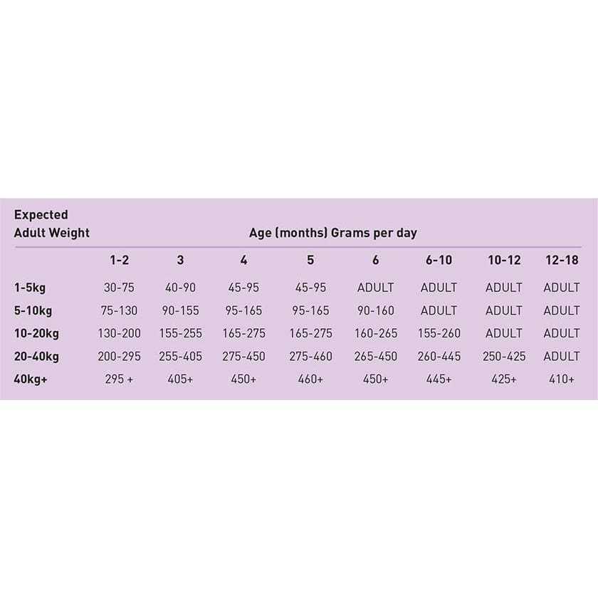 An ideal food for puppies with sensitive skin and/or delicate digestions. It is also suitable through to adult height for small to medium breeds and for large breeds up to 18 months.